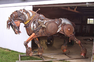 South Dakota sculptor John Lopez stands next to his latest creation